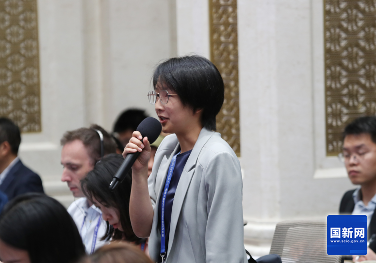 美国国际市场新闻社记者提问(赵一帆摄)
